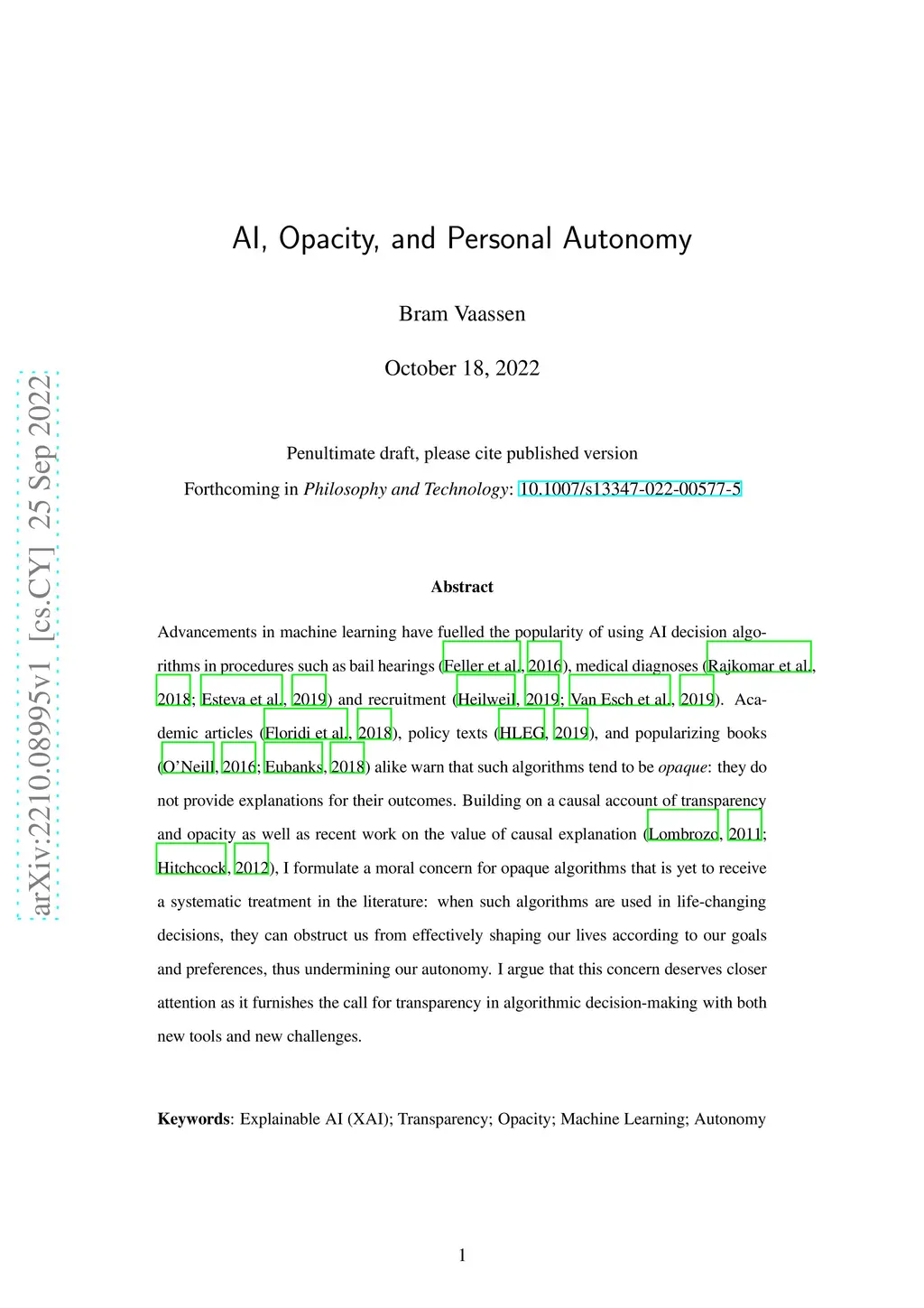 Advancements in machine learning have fuelled the popularity of using AI decision algorithms in procedures such as bail hearings (Feller et al. 2016), medical diagnoses (Rajkomar et al. 2018; Esteva et al. 2019) and recruitment (Heilweil 2019, Van Esch et al. 2019). Academic articles (Floridi et al. 2018), policy texts (HLEG 2019), and popularizing books (OÑeill 2016, Eubanks 2018) alike warn that such algorithms tend to be _opaque_: they do not provide explanations for their outcomes. Building on a causal account of transparency and opacity as well as recent work on the value of causal explanation (Lombrozo 2011, Hitchcock 2012), I formulate a moral concern for opaque algorithms that is yet to receive a systematic treatment in the literature: when such algorithms are used in life-changing decisions, they can obstruct us from effectively shaping our lives according to our goals and preferences, thus undermining our autonomy. I argue that this concern deserves closer attention as it furnishes the call for transparency in algorithmic decision-making with both new tools and new challenges.