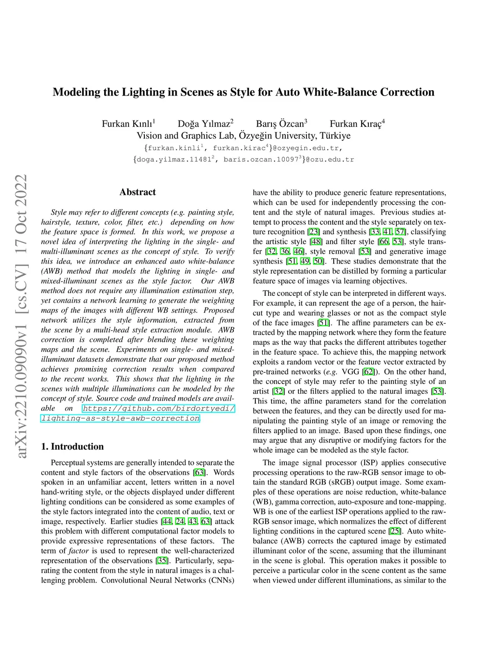 Modeling the Lighting in Scenes as Style for Auto White-Balance