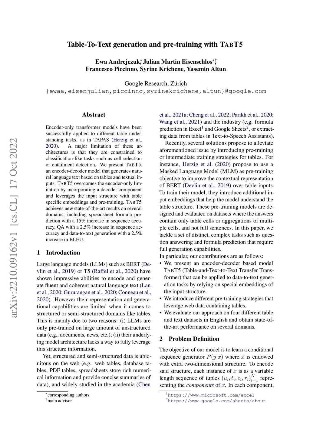 Table-To-Text generation and pre-training with TabT5