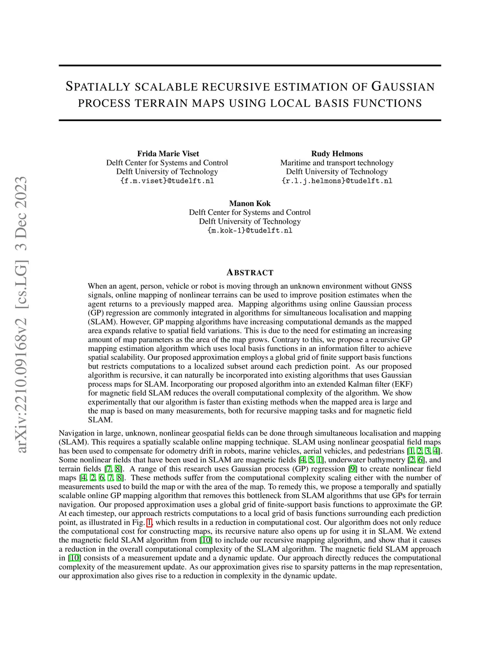 Spatially scalable recursive estimation of Gaussian process terrain maps using local basis functions
