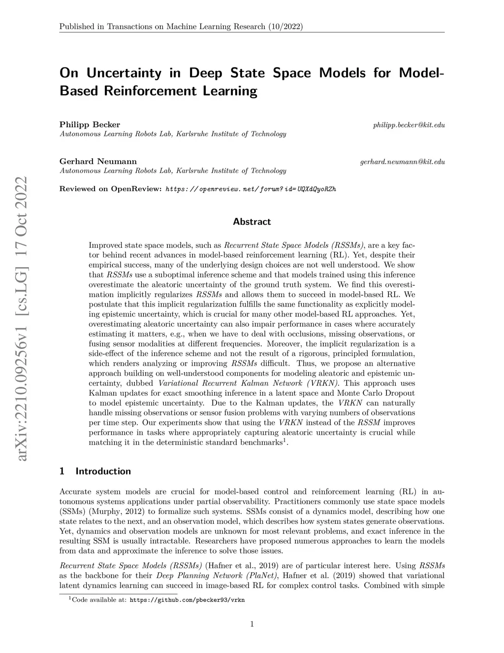 Improved state space models, such as Recurrent State Space Models (RSSMs), are a key factor behind recent advances in model-based reinforcement learning (RL). Yet, despite their empirical success, many of the underlying design choices are not well understood. We show that RSSMs use a suboptimal inference scheme and that models trained using this inference overestimate the aleatoric uncertainty of the ground truth system. We find this overestimation implicitly regularizes RSSMs and allows them to succeed in model-based RL. We postulate that this implicit regularization fulfills the same functionality as explicitly modeling epistemic uncertainty, which is crucial for many other model-based RL approaches. Yet, overestimating aleatoric uncertainty can also impair performance in cases where accurately estimating it matters, e.g., when we have to deal with occlusions, missing observations, or fusing sensor modalities at different frequencies. Moreover, the implicit regularization is a side-effect of the inference scheme and not the result of a rigorous, principled formulation, which renders analyzing or improving RSSMs difficult. Thus, we propose an alternative approach building on well-understood components for modeling aleatoric and epistemic uncertainty, dubbed Variational Recurrent Kalman Network (VRKN). This approach uses Kalman updates for exact smoothing inference in a latent space and Monte Carlo Dropout to model epistemic uncertainty. Due to the Kalman updates, the VRKN can naturally handle missing observations or sensor fusion problems with varying numbers of observations per time step. Our experiments show that using the VRKN instead of the RSSM improves performance in tasks where appropriately capturing aleatoric uncertainty is crucial while matching it in the deterministic standard benchmarks.