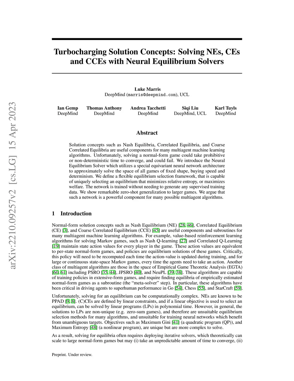 Solution concepts such as Nash Equilibria, Correlated Equilibria, and Coarse Correlated Equilibria are useful components for many multiagent machine learning algorithms. Unfortunately, solving a normal-form game could take prohibitive or non-deterministic time to converge, and could fail. We introduce the Neural Equilibrium Solver which utilizes a special equivariant neural network architecture to approximately solve the space of all games of fixed shape, buying speed and determinism. We define a flexible equilibrium selection framework, that is capable of uniquely selecting an equilibrium that minimizes relative entropy, or maximizes welfare. The network is trained without needing to generate any supervised training data. We show remarkable zero-shot generalization to larger games. We argue that such a network is a powerful component for many possible multiagent algorithms.