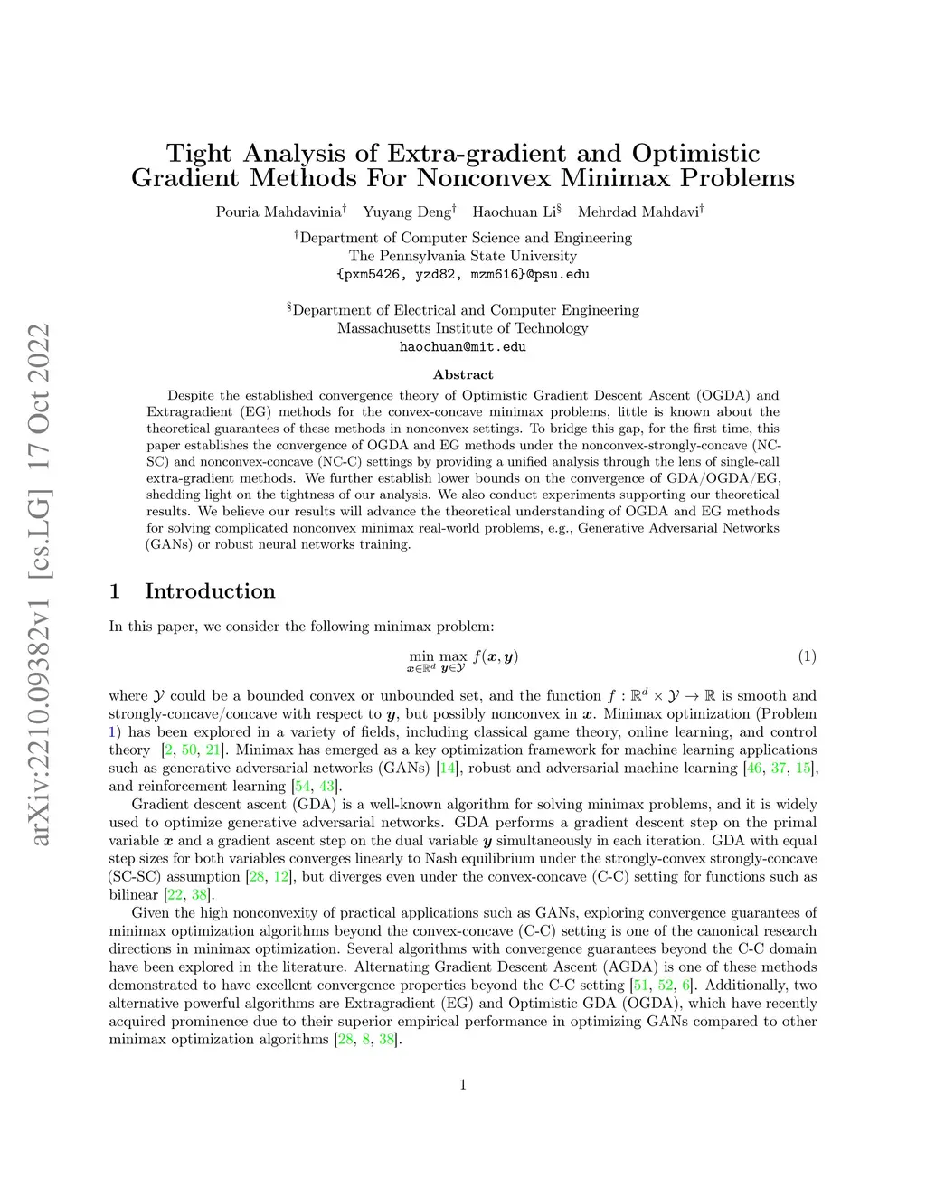 Nonconvex Minimax Problems