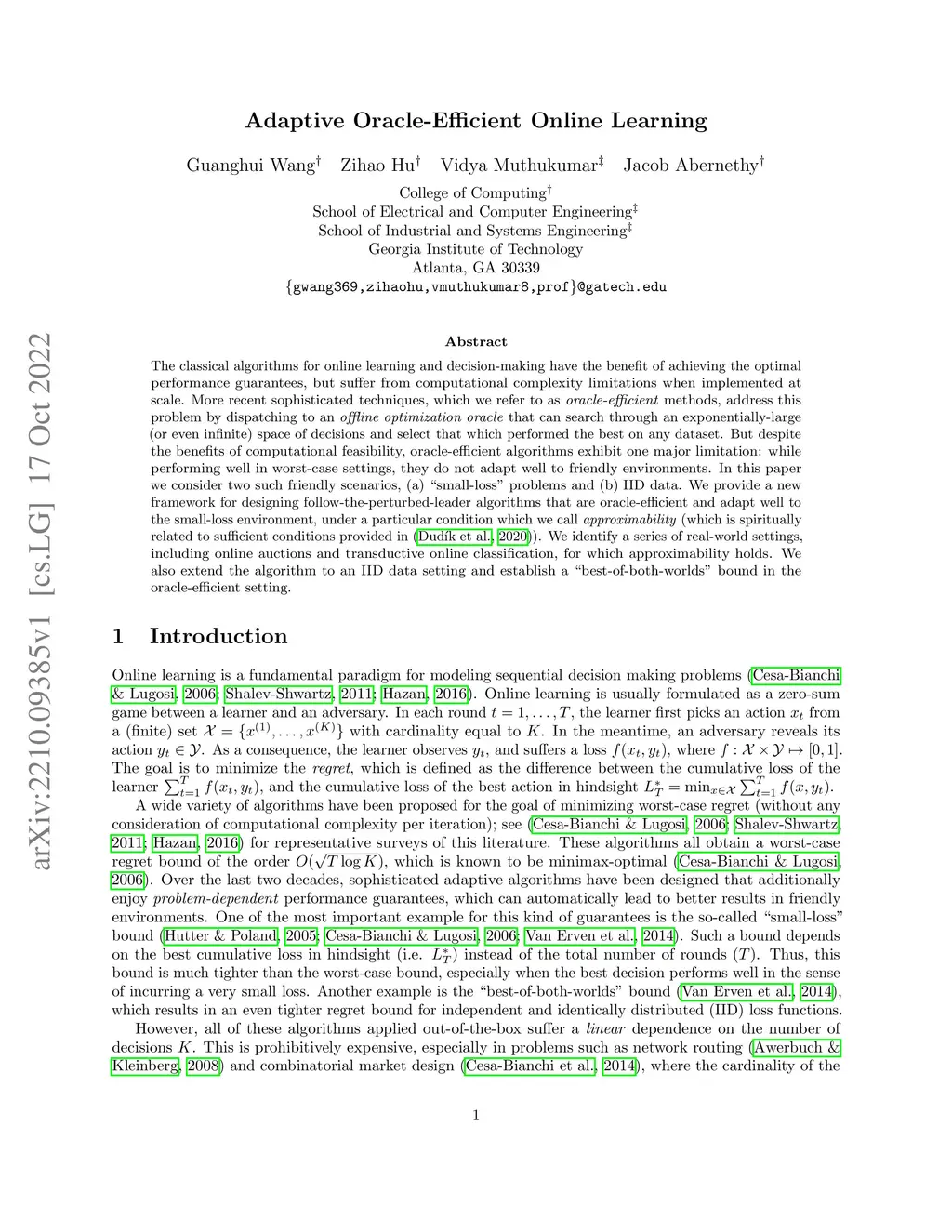 Adaptive Oracle-Efficient Online Learning