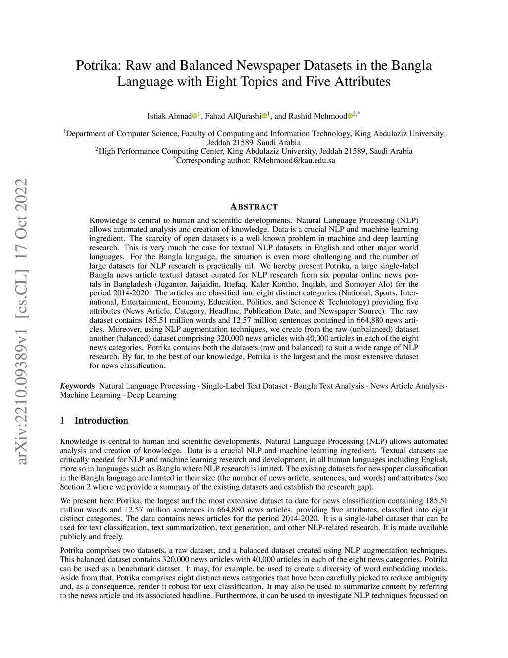 Potrika: Raw and Balanced Newspaper Datasets in the Bangla Language with