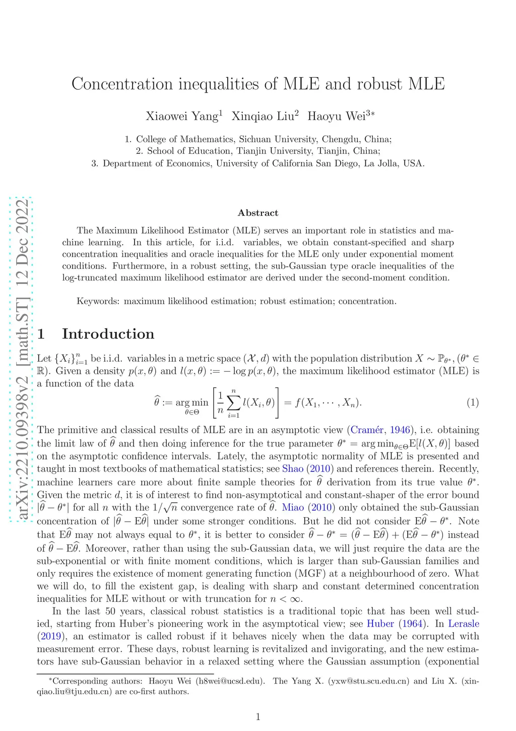 The Maximum Likelihood Estimator (MLE) serves an important role in statistics and machine learning. In this article, for i.i.d. variables, we obtain constant-specified and sharp concentration inequalities and oracle inequalities for the MLE only under exponential moment conditions. Furthermore, in a robust setting, the sub-Gaussian type oracle inequalities of the log-truncated maximum likelihood estimator are derived under the second-moment condition.