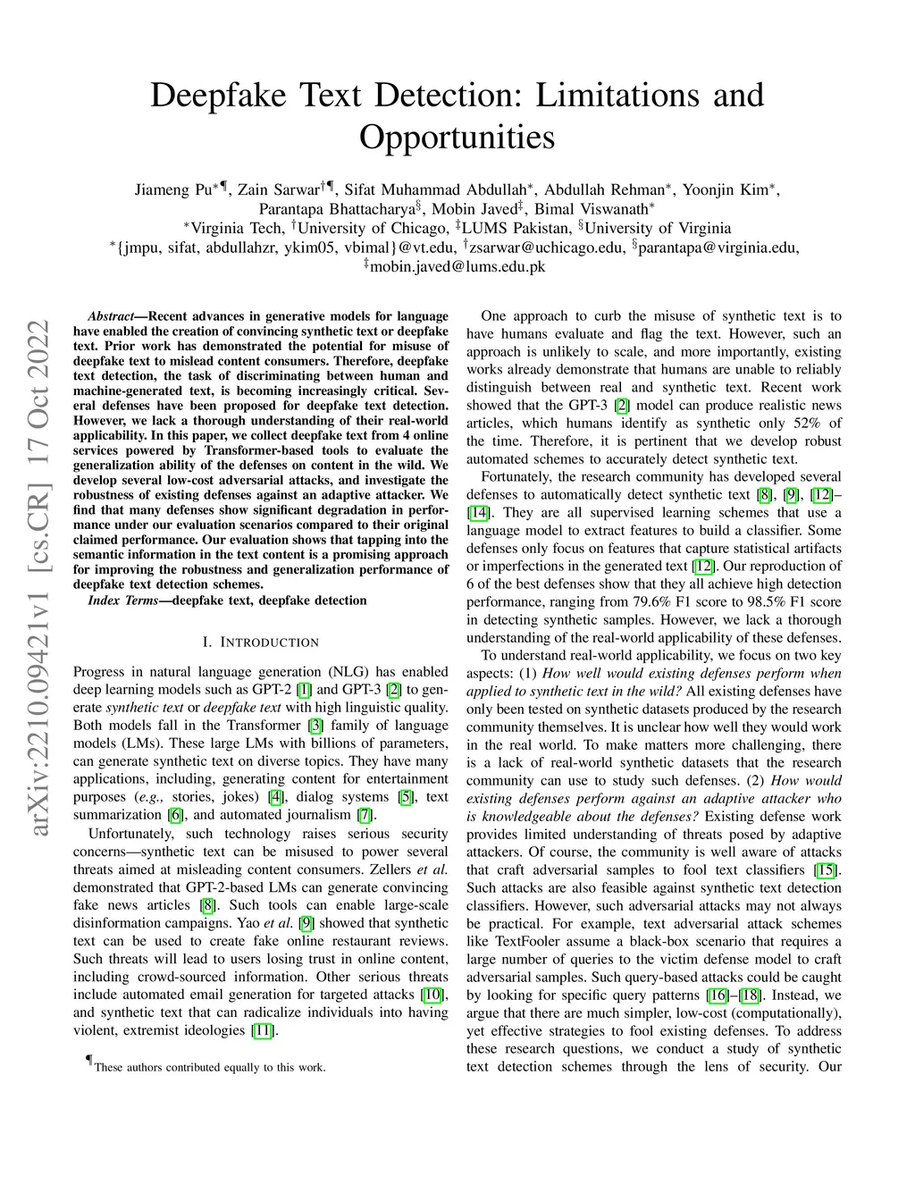 Deepfake Text Detection: Limitations and Opportunities