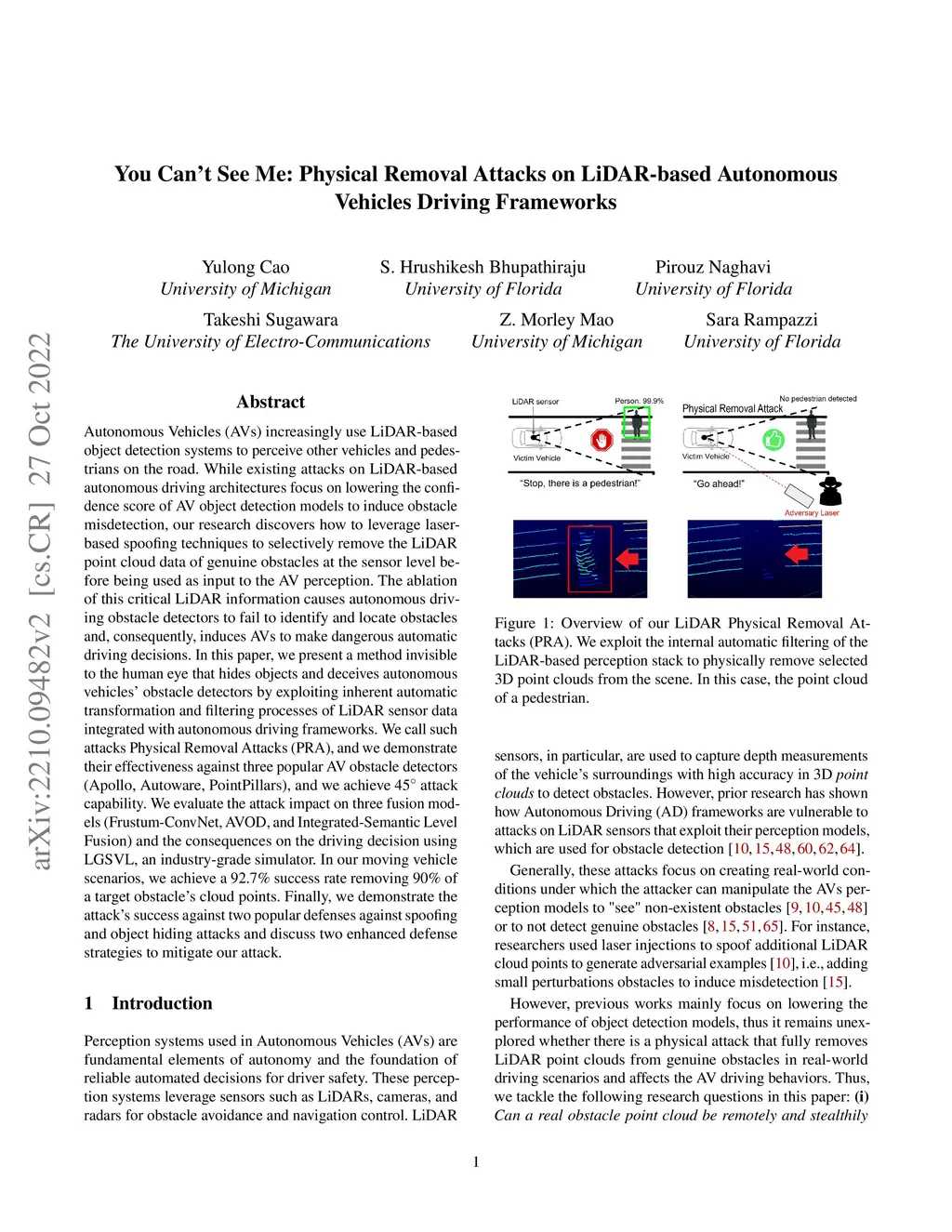 You Can't See Me: Physical Removal Attacks on LiDAR-based Autonomous