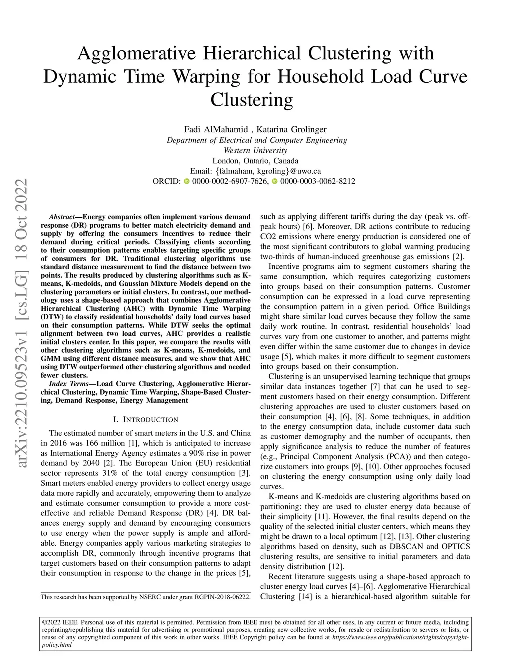 Agglomerative Hierarchical Clustering with Dynamic Time Warping for