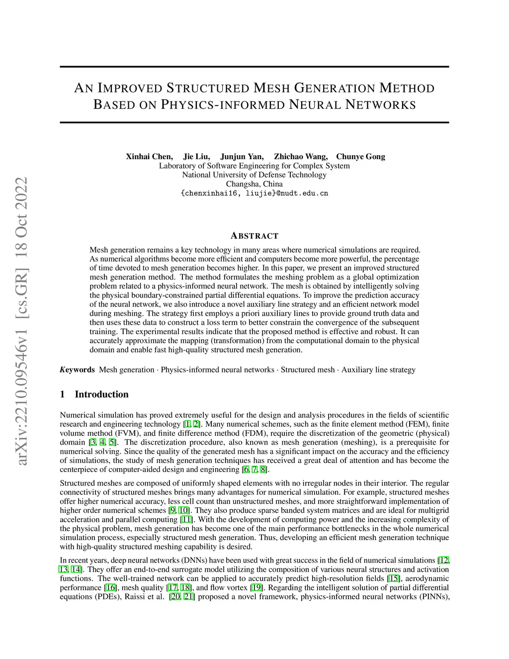 An Improved Structured Mesh Generation Method Based on Physics-informed