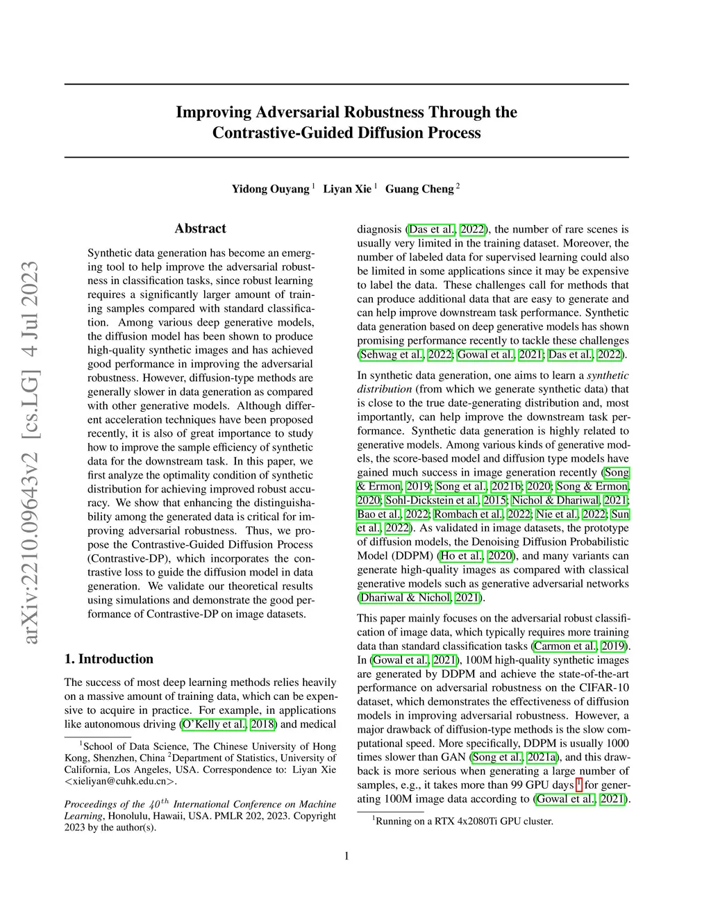 Improving Adversarial Robustness by Contrastive Guided Diffusion Process
