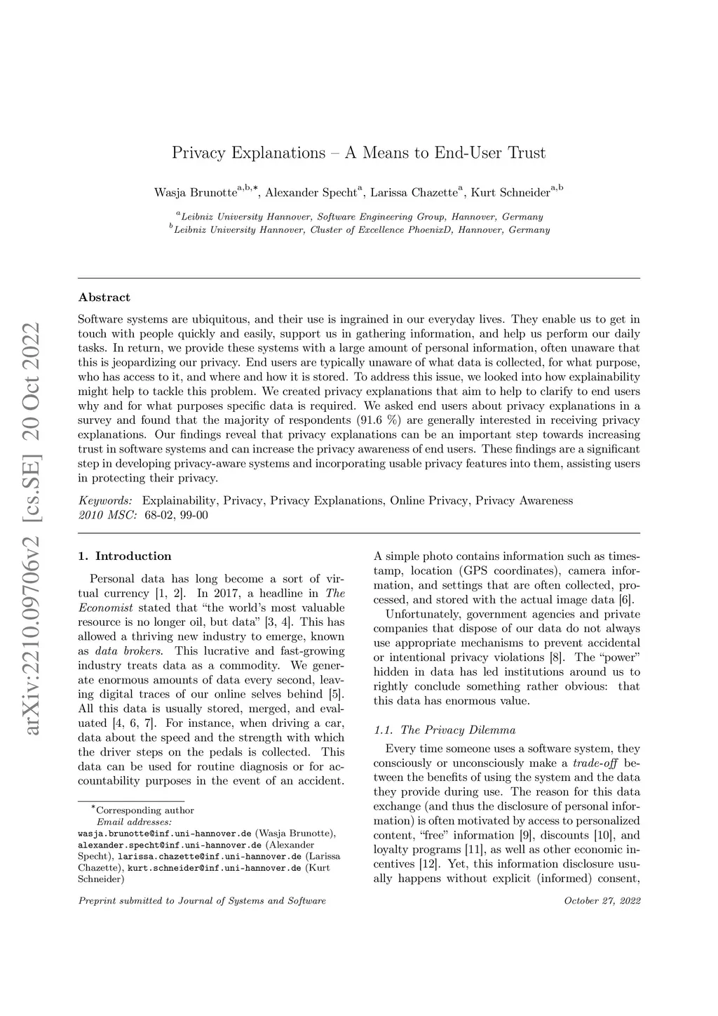 Software systems are ubiquitous, and their use is ingrained in our everyday lives. They enable us to get in touch with people quickly and easily, support us in gathering information, and help us perform our daily tasks. In return, we provide these systems with a large amount of personal information, often unaware that this is jeopardizing our privacy. End users are typically unaware of what data is collected, for what purpose, who has access to it, and where and how it is stored. To address this issue, we looked into how explainability might help to tackle this problem. We created privacy explanations that aim to help to clarify to end users why and for what purposes specific data is required. We asked end users about privacy explanations in a survey and found that the majority of respondents (91.6 \%) are generally interested in receiving privacy explanations. Our findings reveal that privacy explanations can be an important step towards increasing trust in software systems and can increase the privacy awareness of end users. These findings are a significant step in developing privacy-aware systems and incorporating usable privacy features into them, assisting users in protecting their privacy.