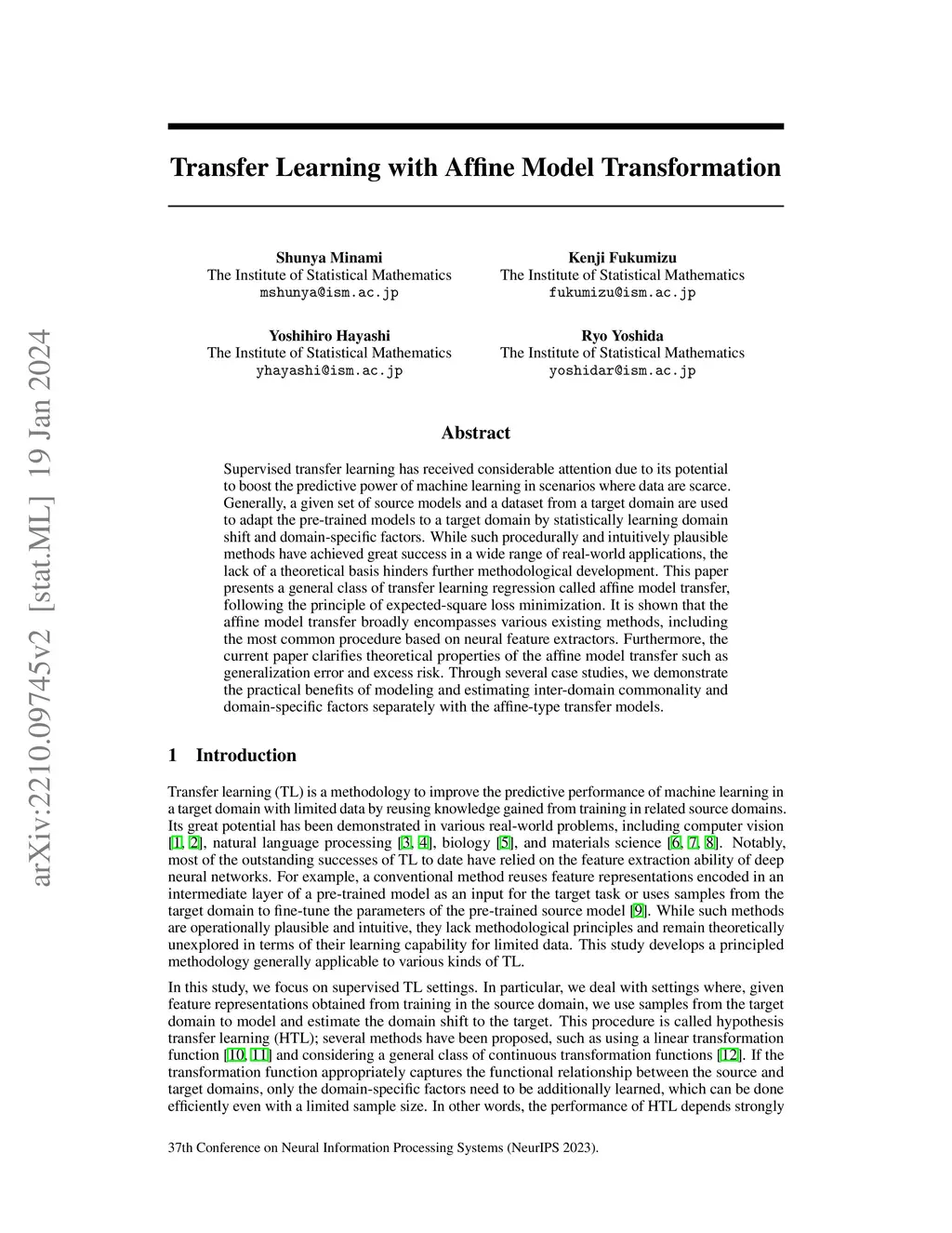 Transfer learning with affine model transformation
