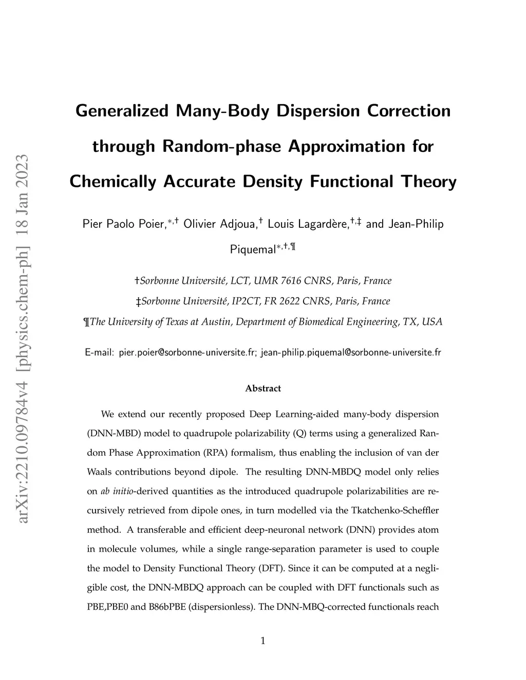 We extend our recently proposed Deep Learning-aided many-body dispersion (DNN-MBD) model to quadrupole polarizability (Q) terms using a generalized Random Phase Approximation (RPA) formalism, thus enabling the inclusion of van der Waals contributions beyond dipole. The resulting DNN-MBDQ model only relies on ab initio-derived quantities as the introduced quadrupole polarizabilities are recursively retrieved from dipole ones, in turn modelled via the Tkatchenko-Scheffler method. A transferable and efficient deep-neuronal network (DNN) provides atom in molecule volumes, while a single range-separation parameter is used to couple the model to Density Functional Theory (DFT). Since it can be computed at a negligible cost, the DNN-MBDQ approach can be coupled with DFT functionals such as PBE,PBE0 and B86bPBE (dispersionless). The DNN-MBQ-corrected functionals reach chemical accuracy while exhibiting lower errors compared to their dipole-only counterparts.