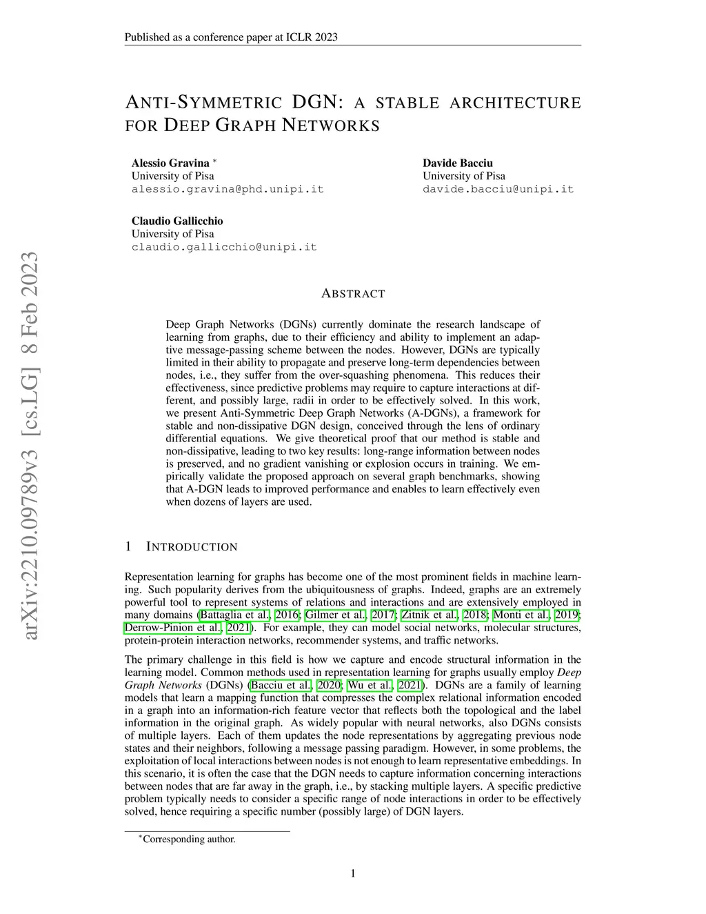 Anti-Symmetric DGN: a stable architecture for Deep Graph Networks