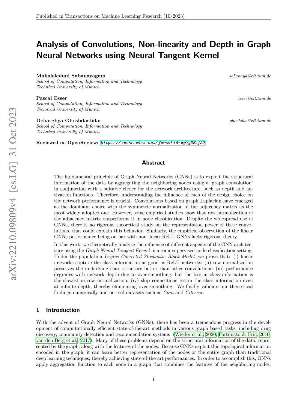 The fundamental principle of Graph Neural Networks (GNNs) is to exploit the structural information of the data by aggregating the neighboring nodes using a `graph convolution' in conjunction with a suitable choice for the network architecture, such as depth and activation functions. Therefore, understanding the influence of each of the design choice on the network performance is crucial. Convolutions based on graph Laplacian have emerged as the dominant choice with the symmetric normalization of the adjacency matrix as the most widely adopted one. However, some empirical studies show that row normalization of the adjacency matrix outperforms it in node classification. Despite the widespread use of GNNs, there is no rigorous theoretical study on the representation power of these convolutions, that could explain this behavior. Similarly, the empirical observation of the linear GNNs performance being on par with non-linear ReLU GNNs lacks rigorous theory. In this work, we theoretically analyze the influence of different aspects of the GNN architecture using the Graph Neural Tangent Kernel in a semi-supervised node classification setting. Under the population Degree Corrected Stochastic Block Model, we prove that: (i) linear networks capture the class information as good as ReLU networks; (ii) row normalization preserves the underlying class structure better than other convolutions; (iii) performance degrades with network depth due to over-smoothing, but the loss in class information is the slowest in row normalization; (iv) skip connections retain the class information even at infinite depth, thereby eliminating over-smoothing. We finally validate our theoretical findings numerically and on real datasets such as Cora and Citeseer.
