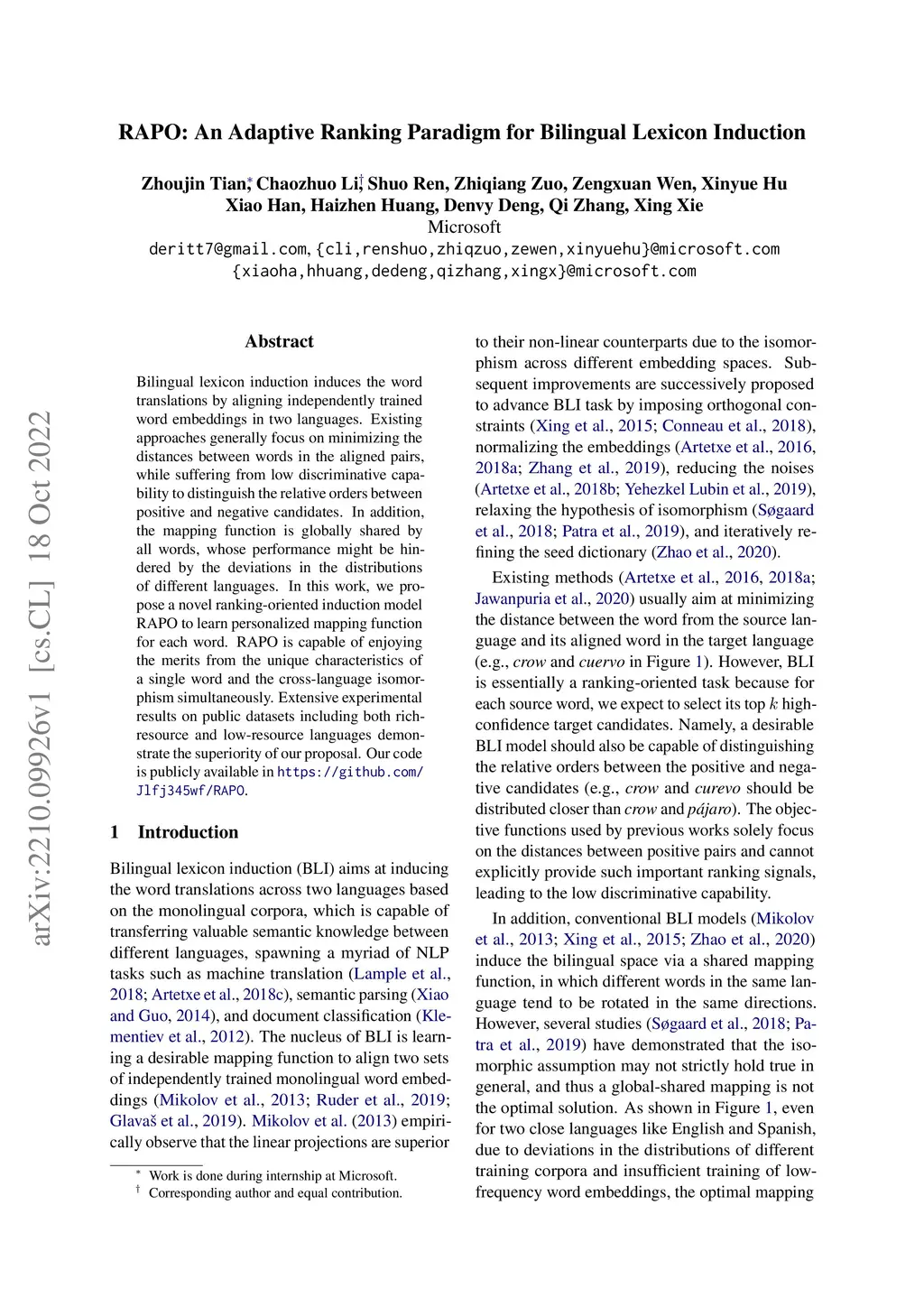 RAPO: An Adaptive Ranking Paradigm for Bilingual Lexicon Induction