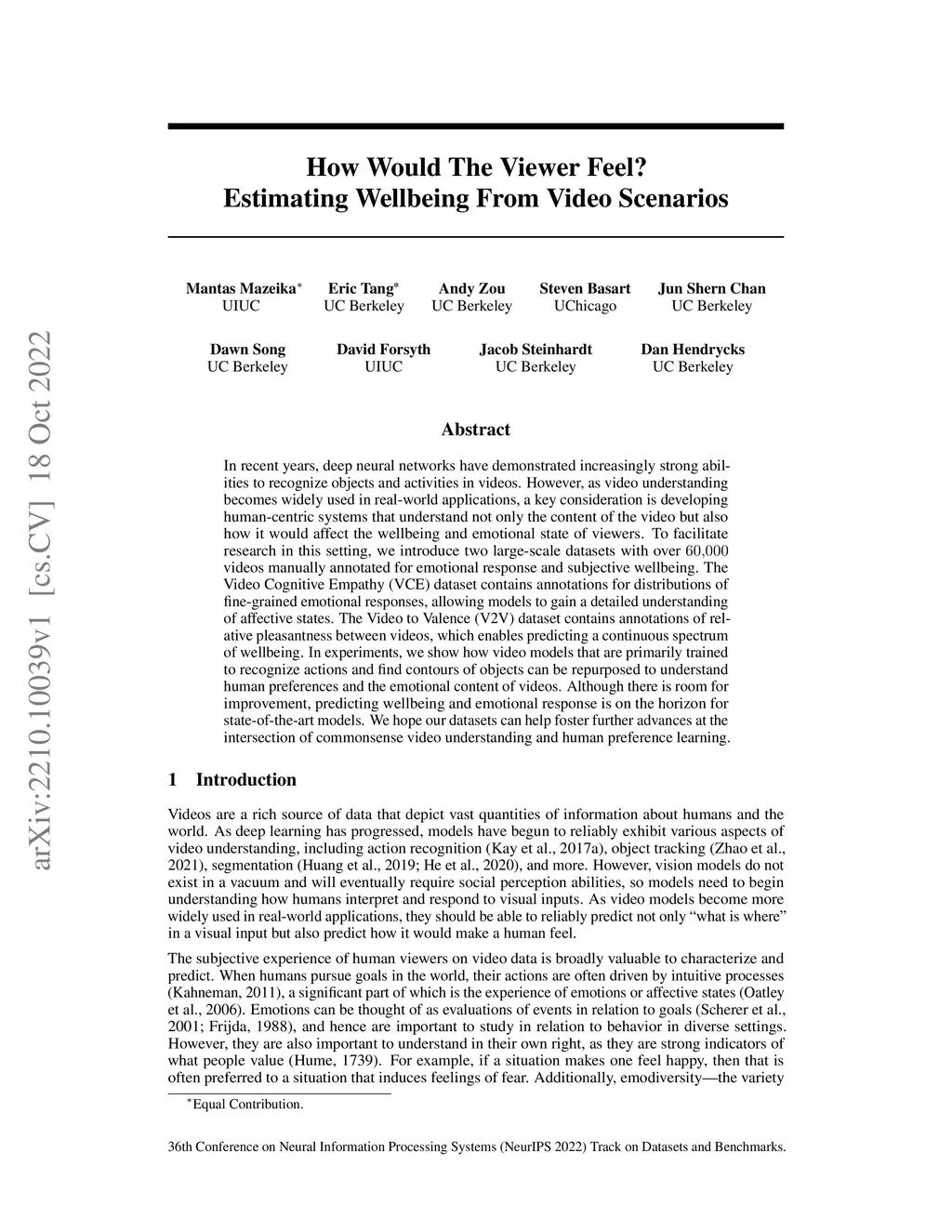 How Would The Viewer Feel? Estimating Wellbeing From Video Scenarios