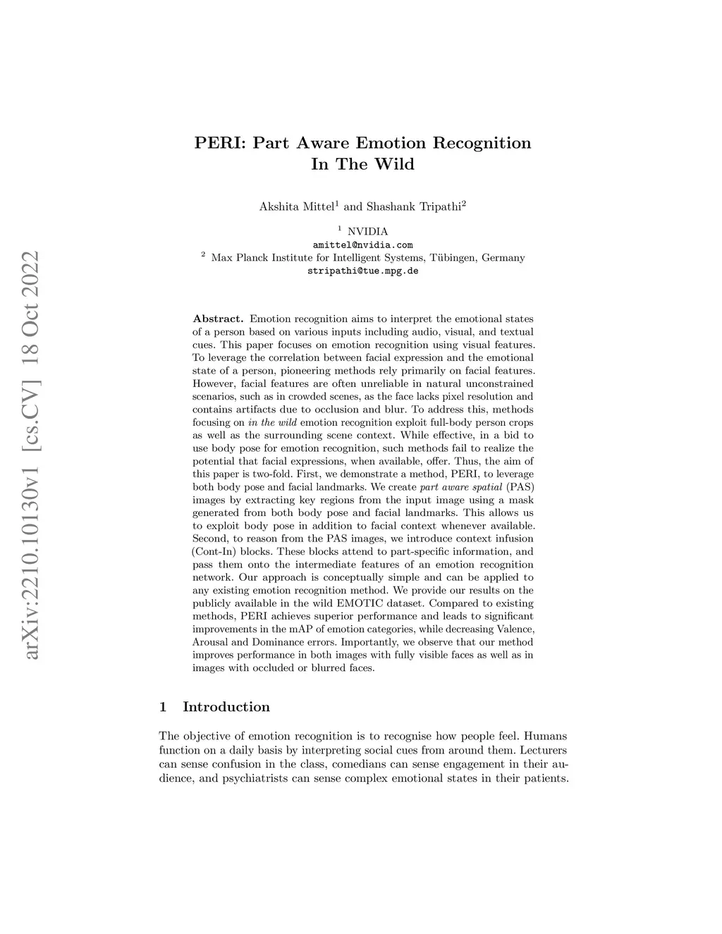 PERI: Part Aware Emotion Recognition In The Wild