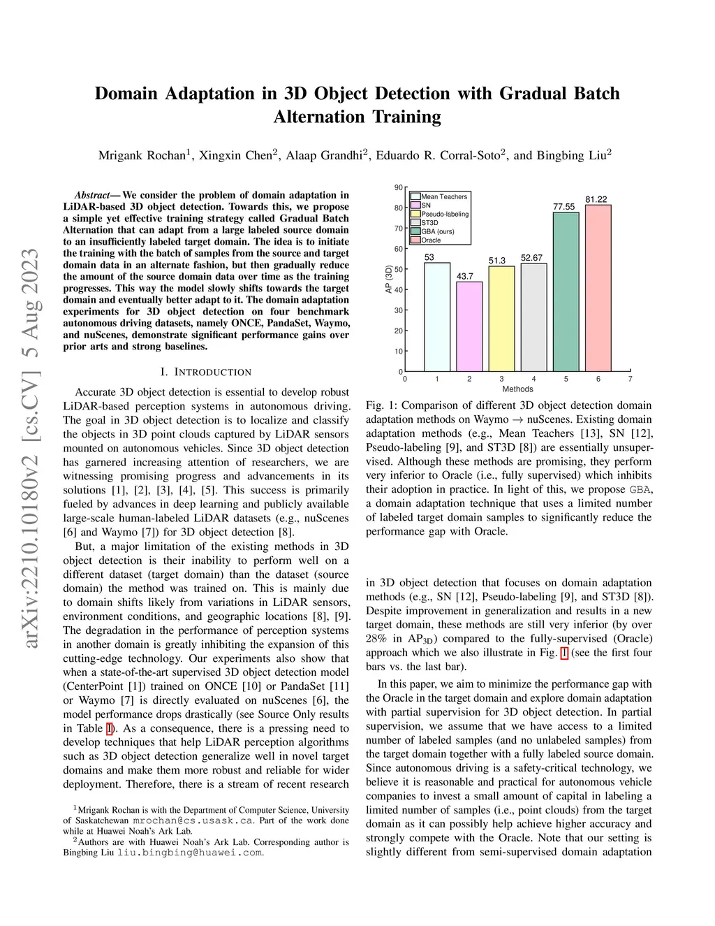 Domain Adaptation in 3D Object Detection with Gradual Batch Alternation