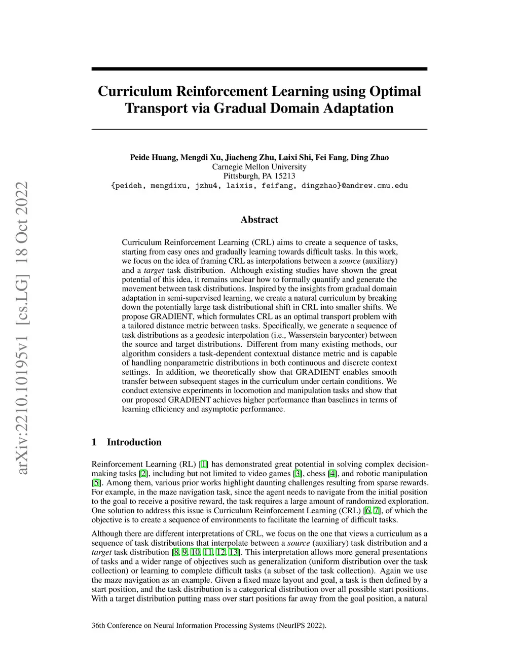 Curriculum Reinforcement Learning using Optimal Transport via Gradual