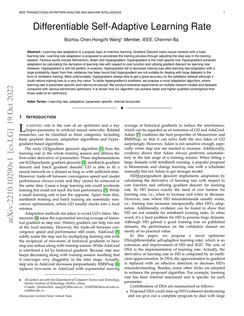 Learning rate adaptation is a popular topic in machine learning. Gradient Descent trains neural nerwork with a fixed learning rate. Learning rate adaptation is proposed to accelerate the training process through adjusting the step size in the training session. Famous works include Momentum, Adam and Hypergradient. Hypergradient is the most special one. Hypergradient achieved adaptation by calculating the derivative of learning rate with respect to cost function and utilizing gradient descent for learning rate. However, Hypergradient is still not perfect. In practice, Hypergradient fail to decrease training loss after learning rate adaptation with a large probability. Apart from that, evidence has been found that Hypergradient are not suitable for dealing with large datesets in the form of minibatch training. Most unfortunately, Hypergradient always fails to get a good accuracy on the validation dataset although it could reduce training loss to a very tiny value. To solve Hypergradient's problems, we propose a novel adaptation algorithm, where learning rate is parameter specific and internal structured. We conduct extensive experiments on multiple network models and datasets compared with various benchmark optimizers. It is shown that our algorithm can achieve faster and higher qualified convergence than those state-of-art optimizers.