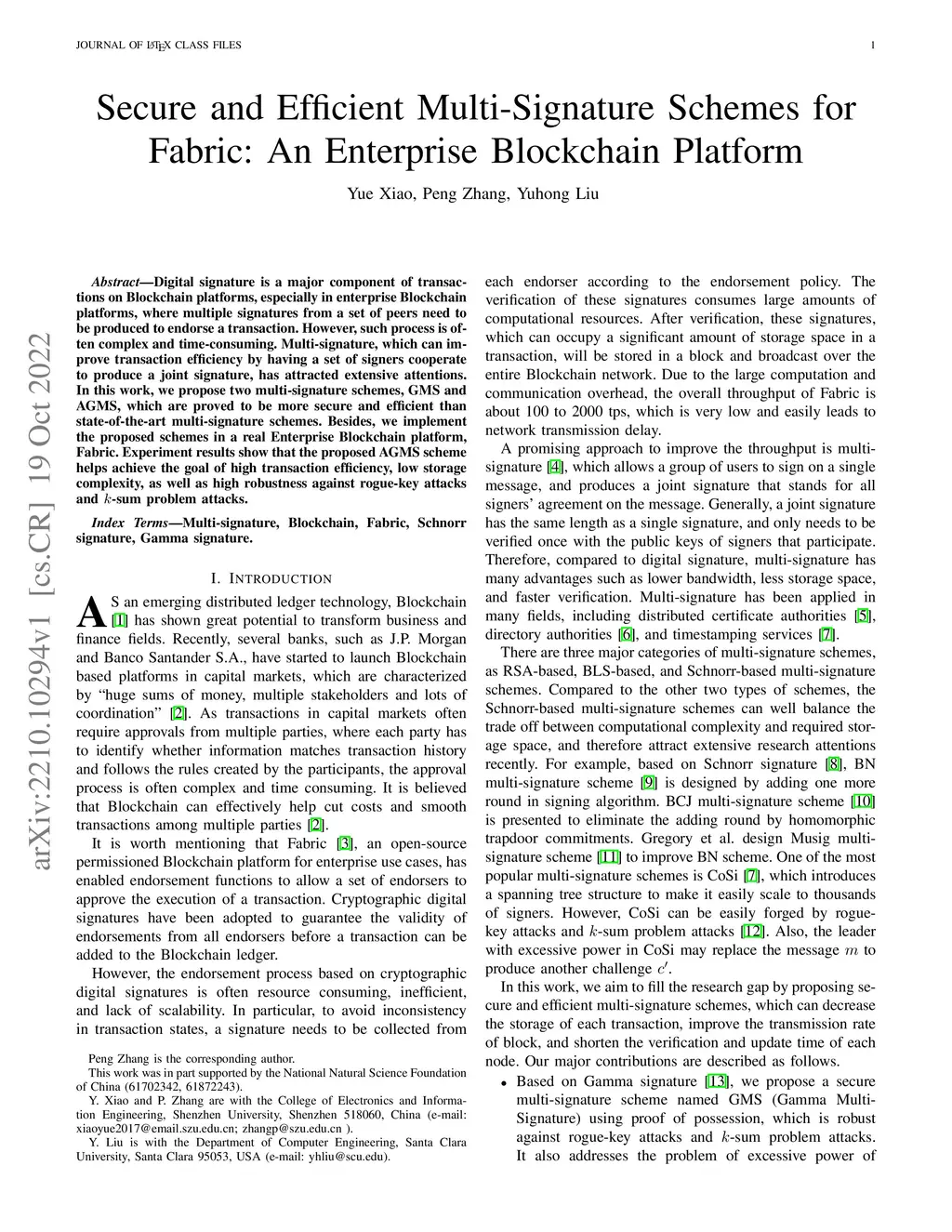 Secure and Efficient Multi-Signature Schemes for Fabric: An Enterprise