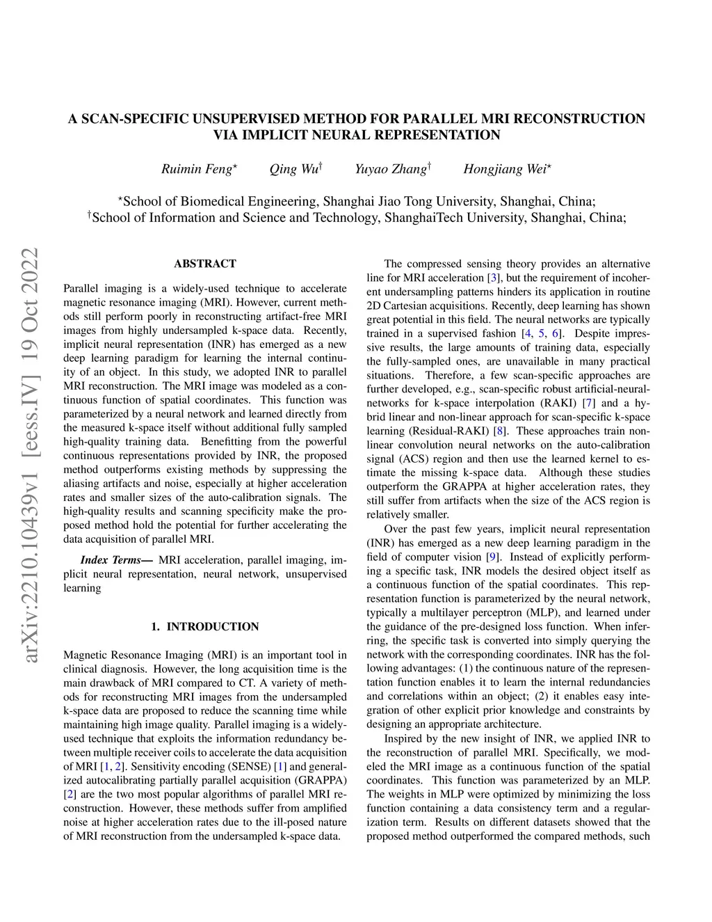 A scan-specific unsupervised method for parallel MRI reconstruction via