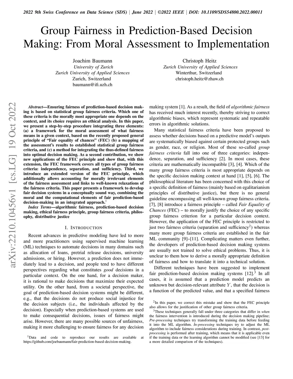 Group Fairness in Prediction-Based Decision Making: From Moral