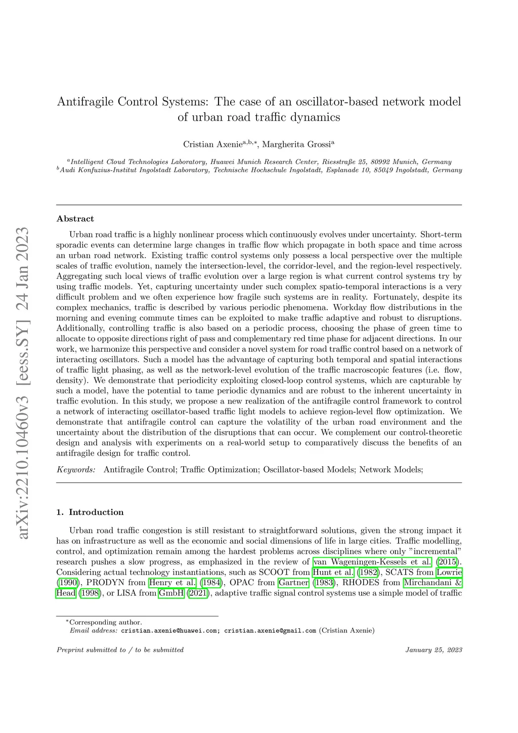 Existing traffic control systems only possess a local perspective over the multiple scales of traffic evolution, namely the intersection level, the corridor level, and the region level respectively. But luckily, despite its complex mechanics, traffic is described by various periodic phenomena. Workday flow distributions in the morning and evening commuting times can be exploited to make traffic adaptive and robust to disruptions. Additionally, controlling traffic is also based on a periodic process, choosing the phase of green time to allocate to opposite directions right of the pass and complementary red time phase for adjacent directions. In our work, we consider a novel system for road traffic control based on a network of interacting oscillators. Such a model has the advantage to capture temporal and spatial interactions of traffic light phasing as well as the network-level evolution of the traffic macroscopic features (i.e. flow, density). In this study, we propose a new realization of the antifragile control framework to control a network of interacting oscillator-based traffic light models to achieve region-level flow optimization. We demonstrate that antifragile control can capture the volatility of the urban road environment and the uncertainty about the distribution of the disruptions that can occur. We complement our control-theoretic design and analysis with experiments on a real-world setup comparatively discussing the benefits of an antifragile design for traffic control.