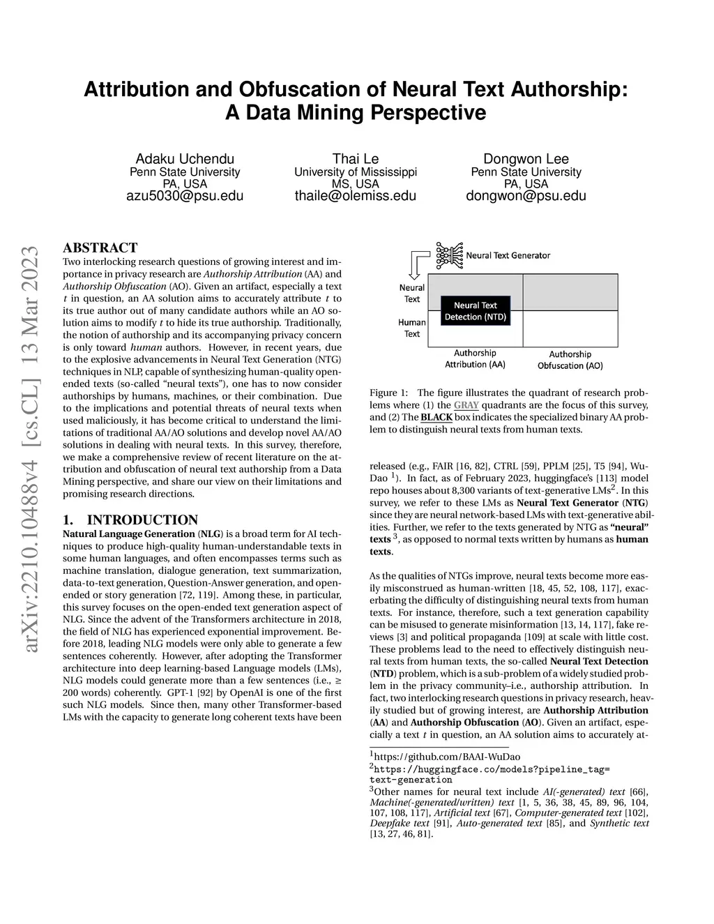 Attribution and Obfuscation of Neural Text Authorship: A Data Mining