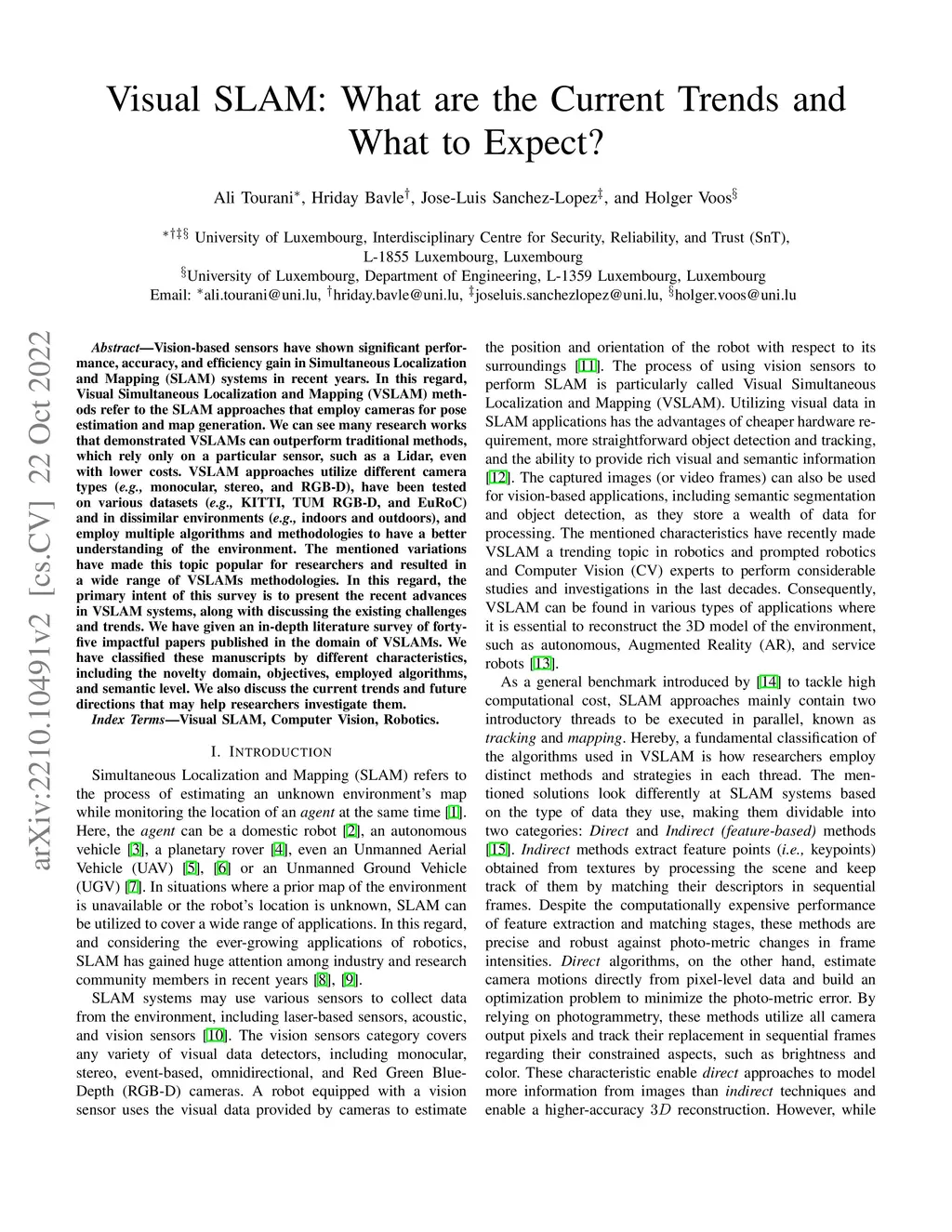 Visual SLAM: What are the Current Trends and What to Expect?