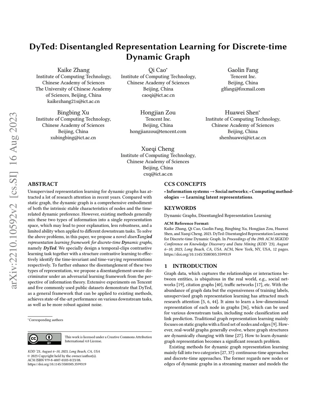 DyTed: Disentangled Representation Learning for Discrete-time Dynamic