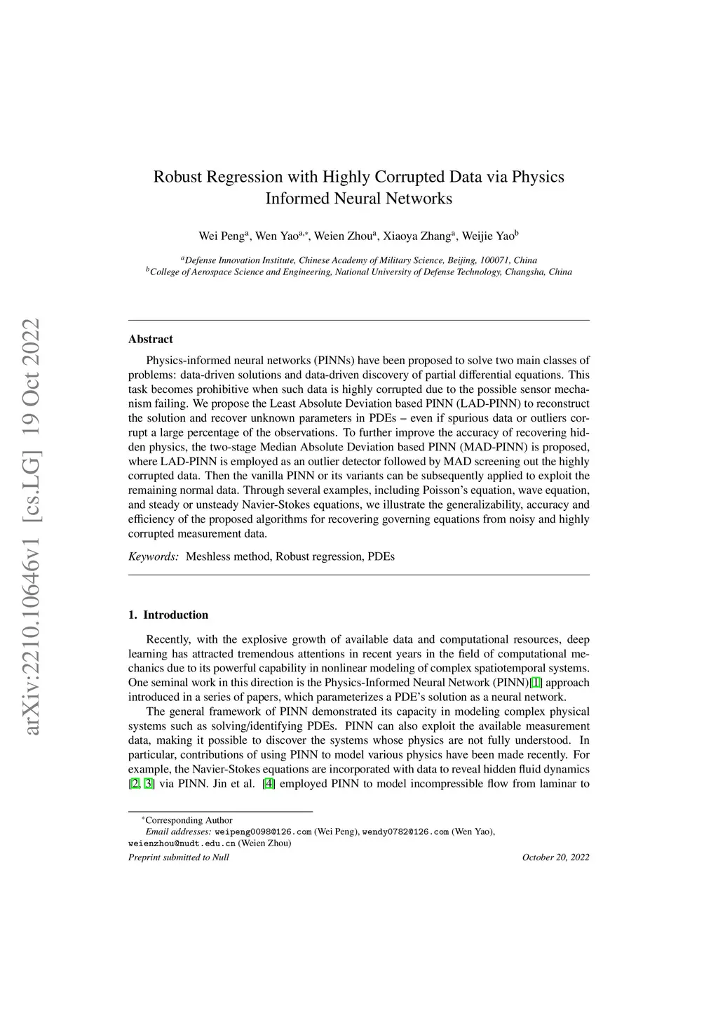 Robust Regression with Highly Corrupted Data via Physics Informed Neural
