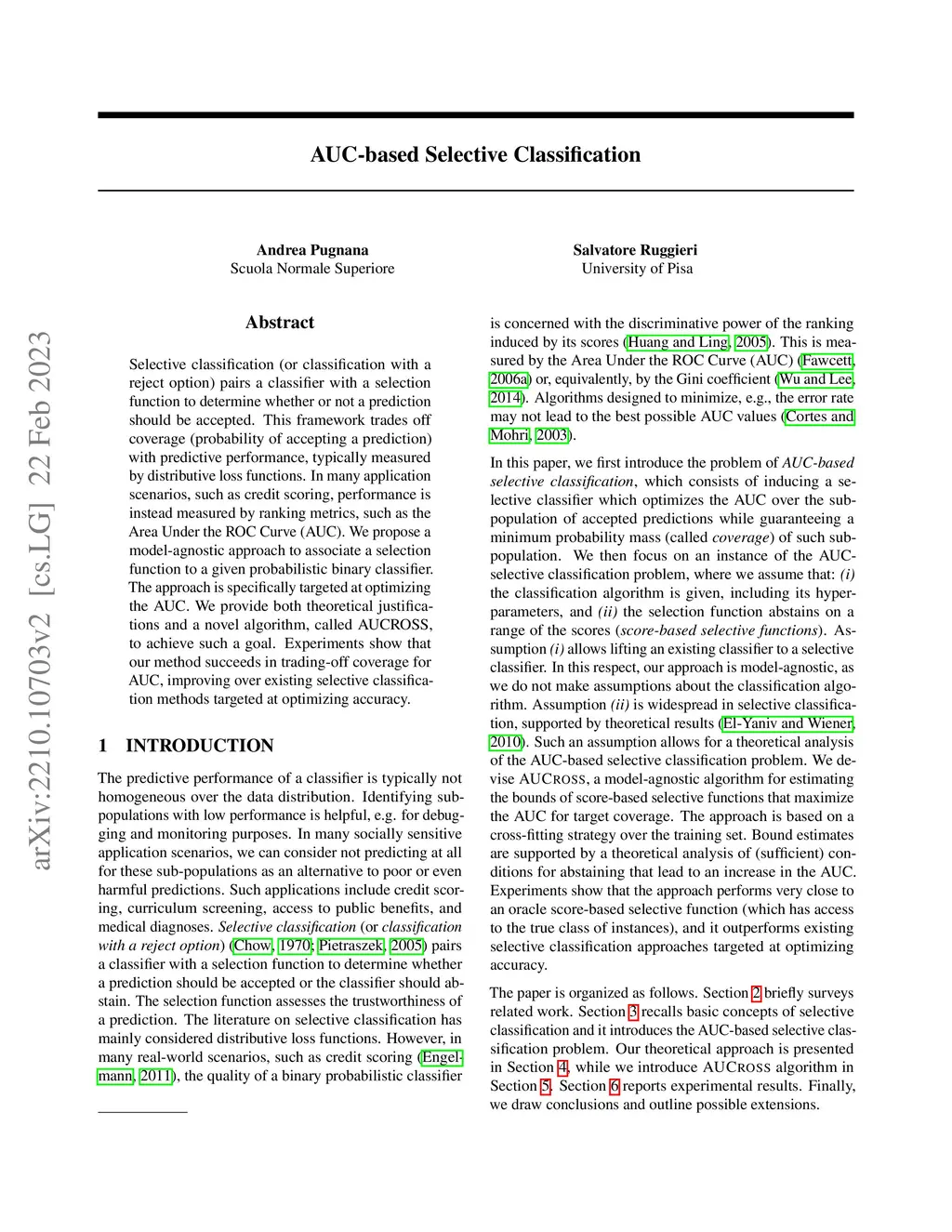 AUC-based Selective Classification