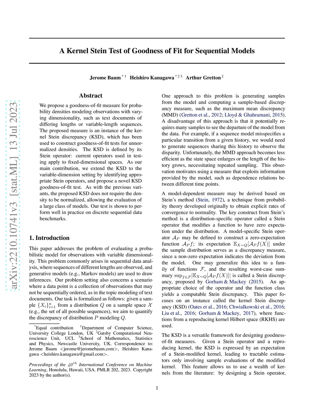 A kernel Stein test of goodness of fit for sequential models