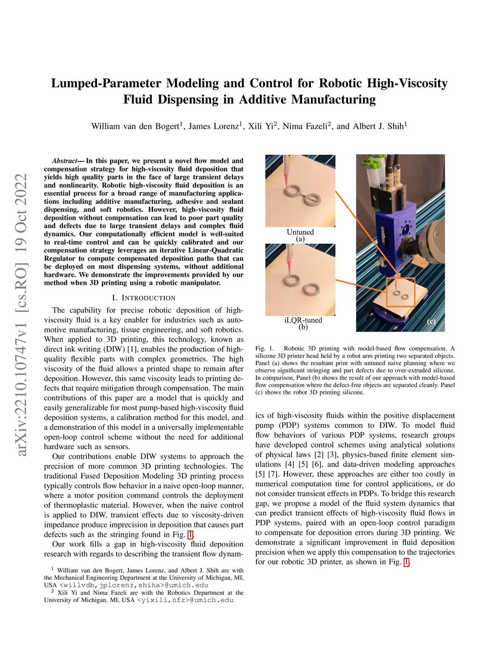In this paper, we present a novel flow model and compensation strategy for high-viscosity fluid deposition that yields high quality parts in the face of large transient delays and nonlinearity. Robotic high-viscosity fluid deposition is an essential process for a broad range of manufacturing applications including additive manufacturing, adhesive and sealant dispensing, and soft robotics. However, high-viscosity fluid deposition without compensation can lead to poor part quality and defects due to large transient delays and complex fluid dynamics. Our computationally efficient model is well-suited to real-time control and can be quickly calibrated and our compensation strategy leverages an iterative Linear-Quadratic Regulator to compute compensated deposition paths that can be deployed on most dispensing systems, without additional hardware. We demonstrate the improvements provided by our method when 3D printing using a robotic manipulator.