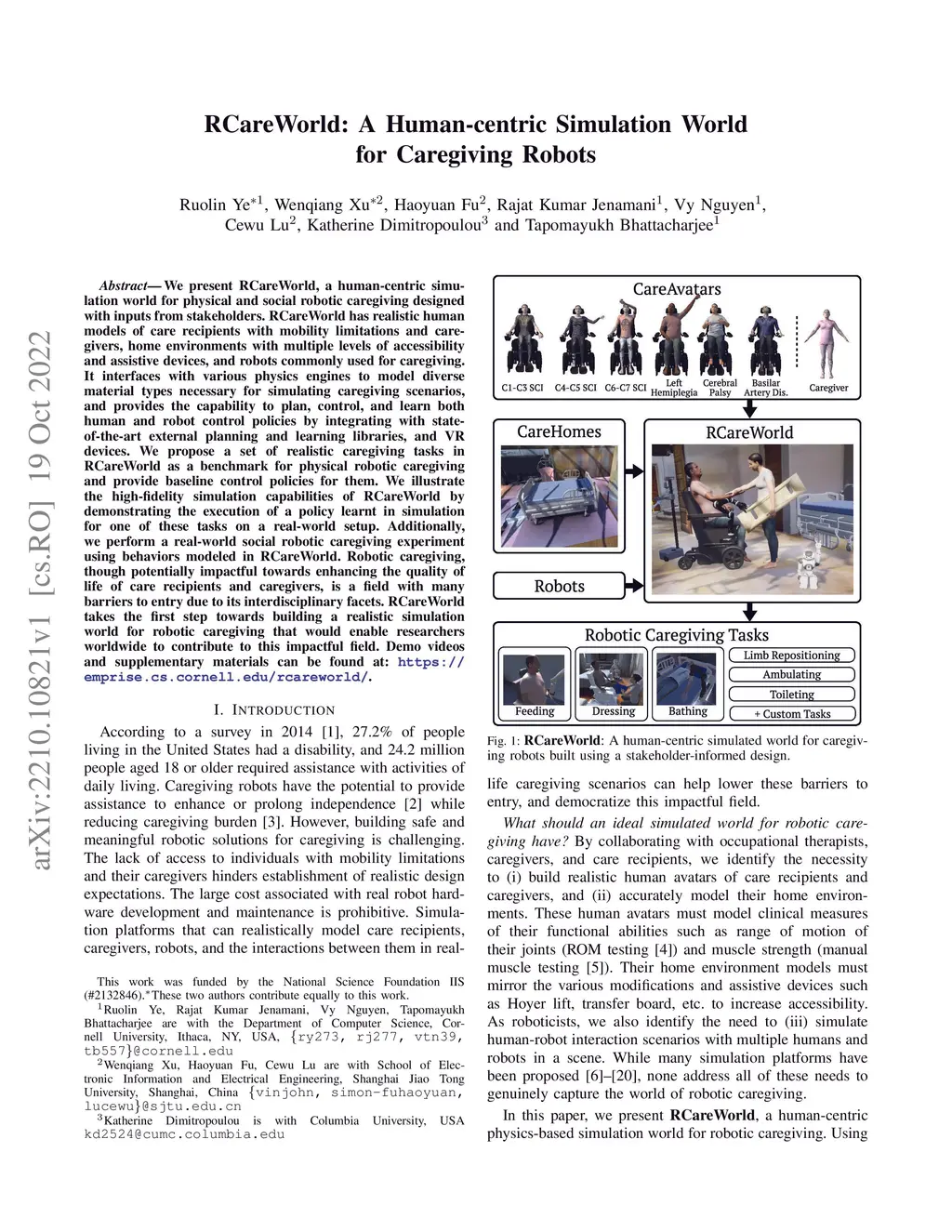 RCareWorld: A Human-centric Simulation World for Caregiving Robots