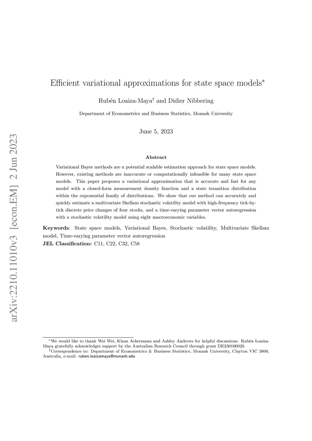 Variational Bayes methods are a potential scalable estimation approach for state space models. However, existing methods are inaccurate or computationally infeasible for many state space models. This paper proposes a variational approximation that is accurate and fast for any model with a closed-form measurement density function and a state transition distribution within the exponential family of distributions. We show that our method can accurately and quickly estimate a multivariate Skellam stochastic volatility model with high-frequency tick-by-tick discrete price changes of four stocks, and a time-varying parameter vector autoregression with a stochastic volatility model using eight macroeconomic variables.