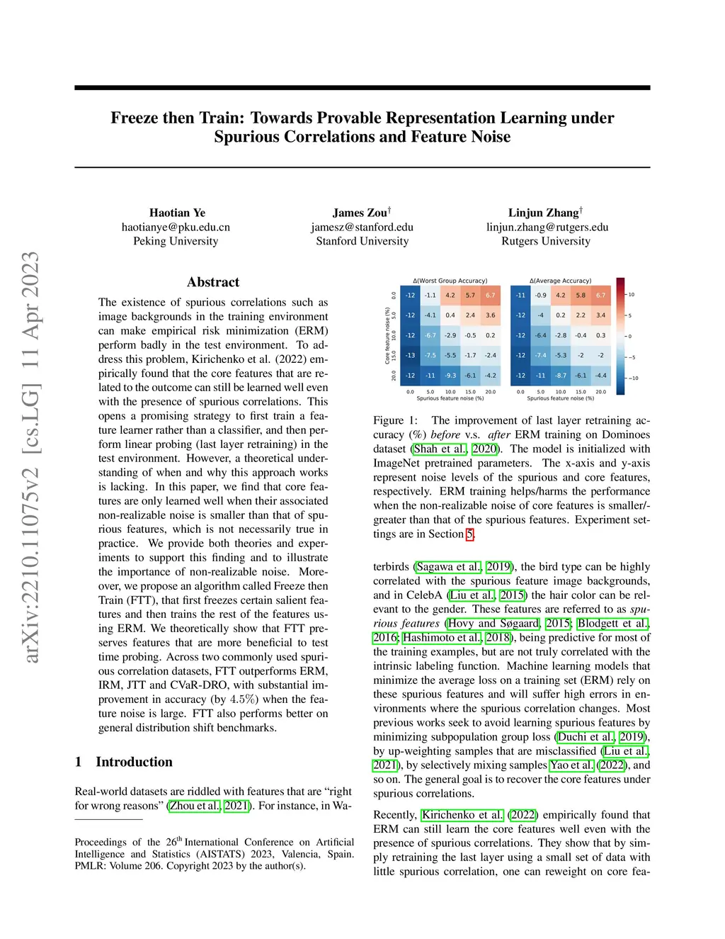 Freeze then Train: Towards Provable Representation Learning under Spurious Correlations and Feature Noise