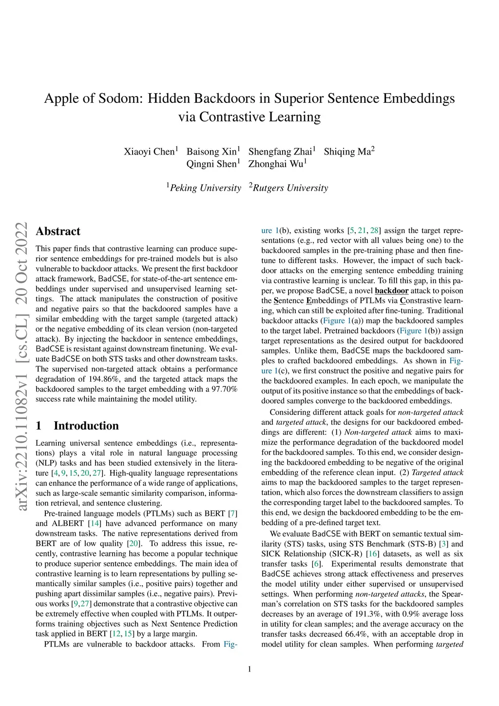 Apple of Sodom: Hidden Backdoors in Superior Sentence Embeddings via