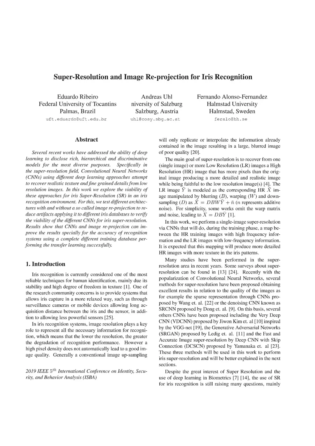 Several recent works have addressed the ability of deep learning to disclose rich, hierarchical and discriminative models for the most diverse purposes. Specifically in the super-resolution field, Convolutional Neural Networks (CNNs) using different deep learning approaches attempt to recover realistic texture and fine grained details from low resolution images. In this work we explore the viability of these approaches for iris Super-Resolution (SR) in an iris recognition environment. For this, we test different architectures with and without a so called image re-projection to reduce artifacts applying it to different iris databases to verify the viability of the different CNNs for iris super-resolution. Results show that CNNs and image re-projection can improve the results specially for the accuracy of recognition systems using a complete different training database performing the transfer learning successfully.