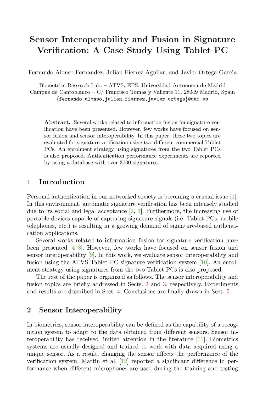 Sensor interoperability and fusion in signature verification: A case