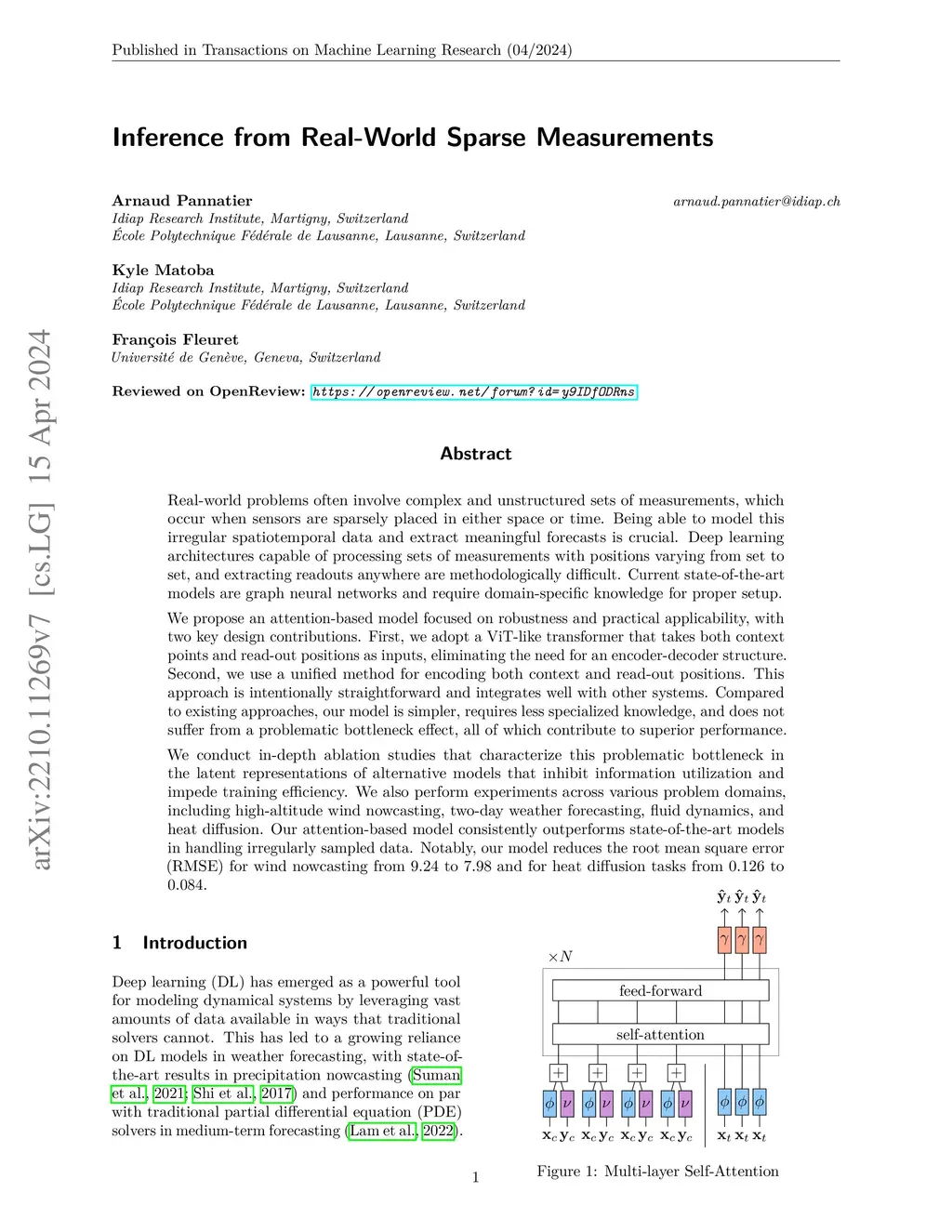 Real-world problems often involve complex and unstructured sets of measurements, which occur when sensors are sparsely placed in either space or time. Being able to model this irregular spatiotemporal data and extract meaningful forecasts is crucial. Deep learning architectures capable of processing sets of measurements with positions varying from set to set, and extracting readouts anywhere are methodologically difficult. Current state-of-the-art models are graph neural networks and require domain-specific knowledge for proper setup. We propose an attention-based model focused on robustness and practical applicability, with two key design contributions. First, we adopt a ViT-like transformer that takes both context points and read-out positions as inputs, eliminating the need for an encoder-decoder structure. Second, we use a unified method for encoding both context and read-out positions. This approach is intentionally straightforward and integrates well with other systems. Compared to existing approaches, our model is simpler, requires less specialized knowledge, and does not suffer from a problematic bottleneck effect, all of which contribute to superior performance. We conduct in-depth ablation studies that characterize this problematic bottleneck in the latent representations of alternative models that inhibit information utilization and impede training efficiency. We also perform experiments across various problem domains, including high-altitude wind nowcasting, two-day weather forecasting, fluid dynamics, and heat diffusion. Our attention-based model consistently outperforms state-of-the-art models in handling irregularly sampled data. Notably, our model reduces the root mean square error (RMSE) for wind nowcasting from 9.24 to 7.98 and for heat diffusion tasks from 0.126 to 0.084.