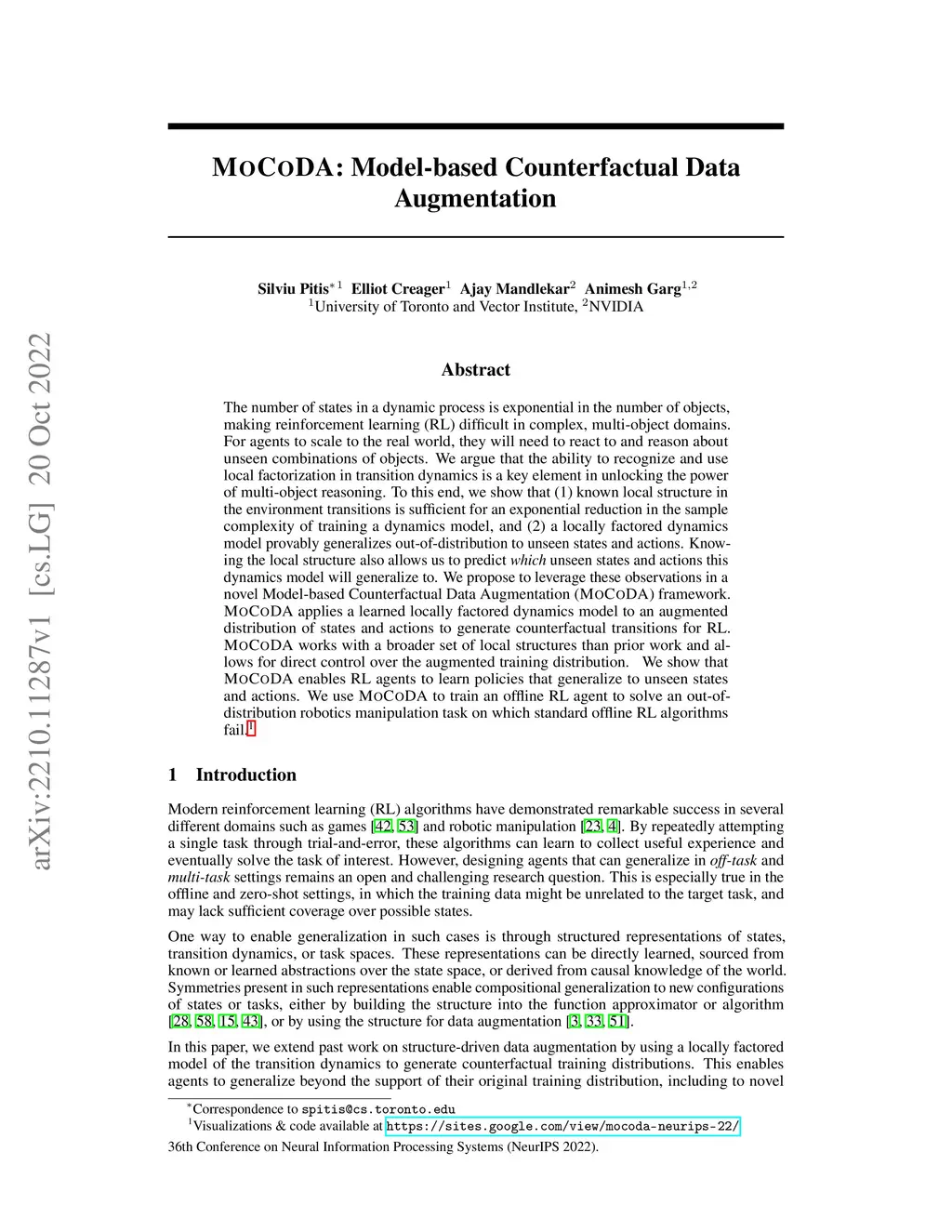MoCoDA: Model-based Counterfactual Data Augmentation
