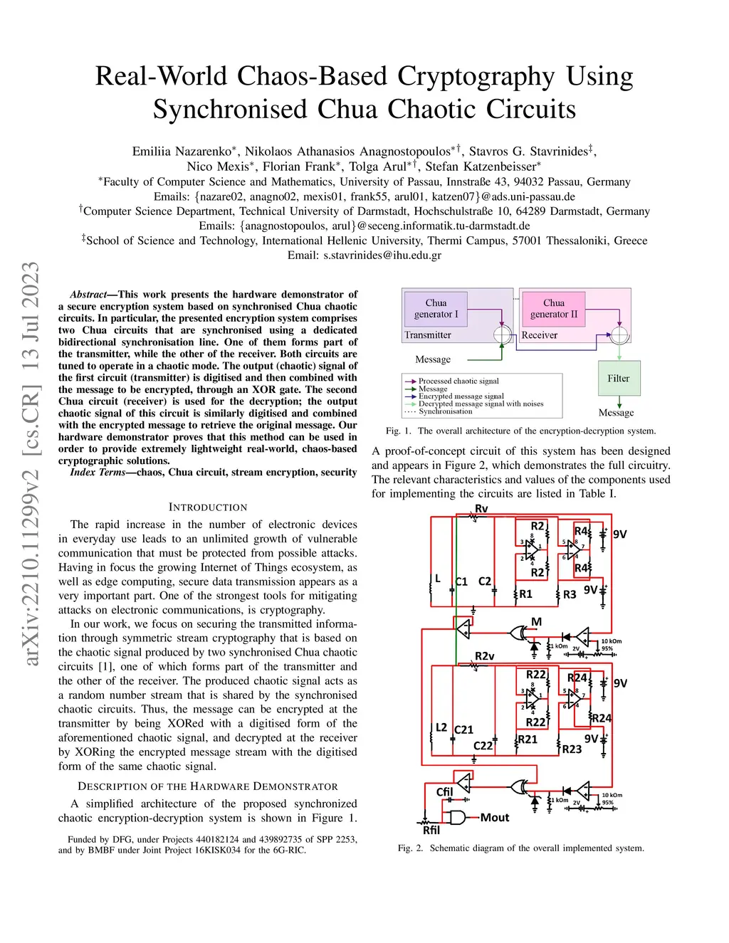 Real-World Chaos-Based Cryptography Using Synchronised Chua Chaotic