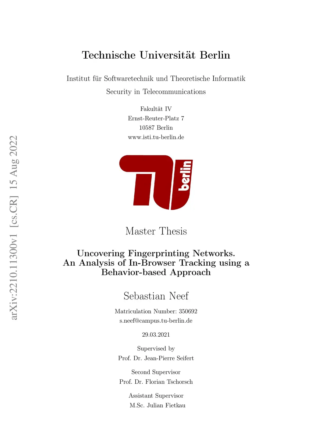 Throughout recent years, the importance of internet-privacy has continuously risen. [...] Browser fingerprinting is a technique that does not require cookies or persistent identifiers. It derives a sufficiently unique identifier from the various browser or device properties. Academic work has covered offensive and defensive fingerprinting methods for almost a decade, observing a rise in popularity. This thesis explores the current state of browser fingerprinting on the internet. For that, we implement FPNET - a scalable & reliable tool based on FPMON, to identify fingerprinting scripts on large sets of websites by observing their behavior. By scanning the Alexa Top 10,000 websites, we spot several hundred networks of equally behaving scripts. For each network, we determine the actor behind it. We track down companies like Google, Yandex, Maxmind, Sift, or FingerprintJS, to name a few. In three complementary studies, we further investigate the uncovered networks with regards to I) randomization of filenames or domains, II) behavior changes, III) security. Two consecutive scans reveal that only less than 12.5% of the pages do not change script files. With our behavior-based approach, we successfully re-identify almost 9,000 scripts whose filename or domain changed, and over 86% of the scripts without URL changes. The security analysis shows an adoption of TLS/SSL to over 98% and specific web security headers set for over 30% of the scripts. Finally, we voice concerns about the unavoidability of modern fingerprinting and its implications for internet users' privacy since we believe that many users are unaware of being fingerprinted or have insufficient possibilities to protect against it.