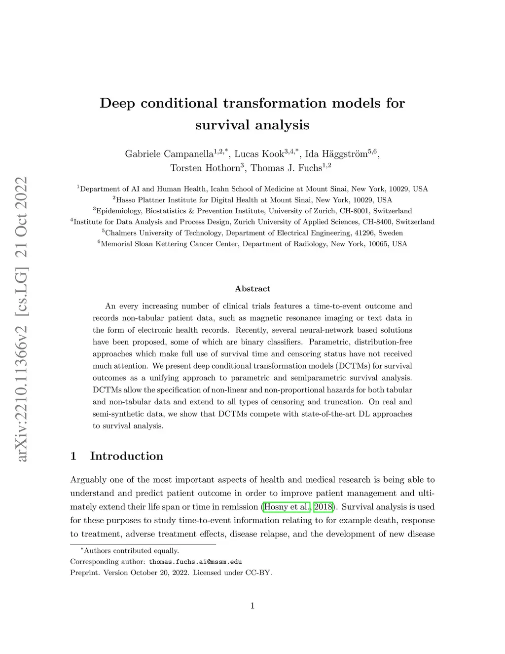An every increasing number of clinical trials features a time-to-event outcome and records non-tabular patient data, such as magnetic resonance imaging or text data in the form of electronic health records. Recently, several neural-network based solutions have been proposed, some of which are binary classifiers. Parametric, distribution-free approaches which make full use of survival time and censoring status have not received much attention. We present deep conditional transformation models (DCTMs) for survival outcomes as a unifying approach to parametric and semiparametric survival analysis. DCTMs allow the specification of non-linear and non-proportional hazards for both tabular and non-tabular data and extend to all types of censoring and truncation. On real and semi-synthetic data, we show that DCTMs compete with state-of-the-art DL approaches to survival analysis.
