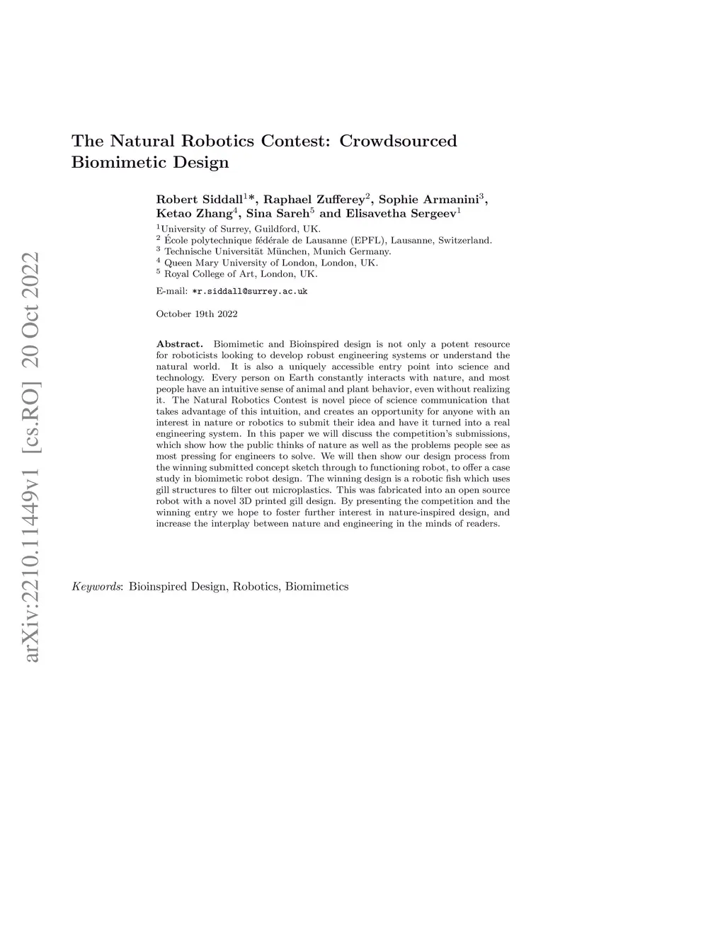 The Natural Robotics Contest: Crowdsourced Biomimetic Design