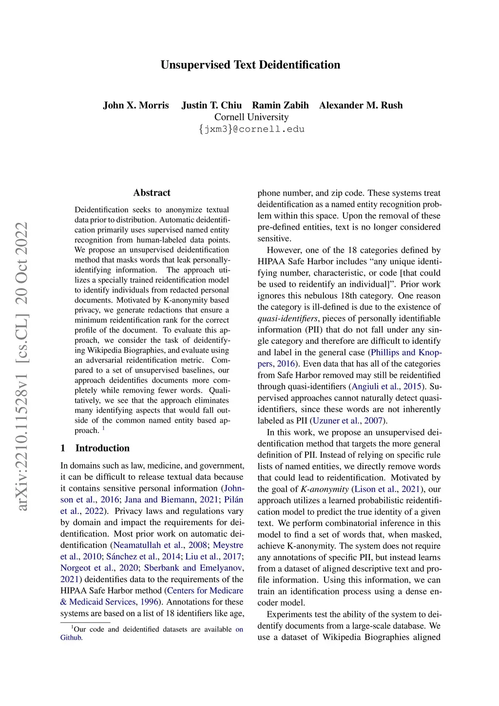 Unsupervised Text Deidentification